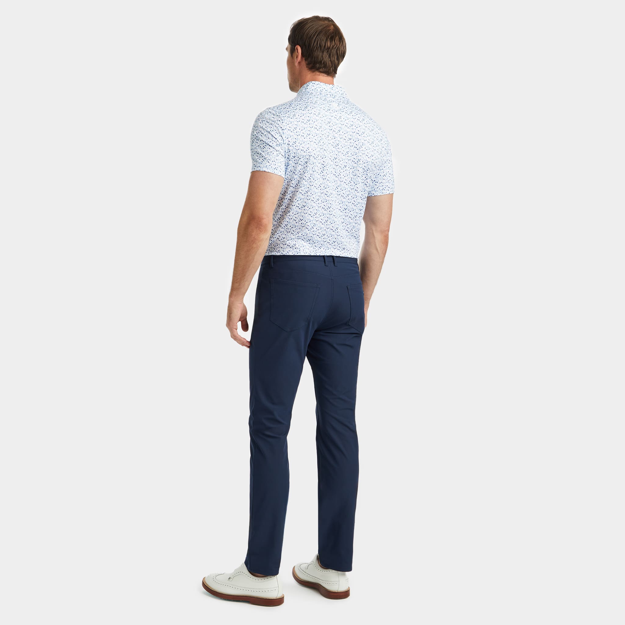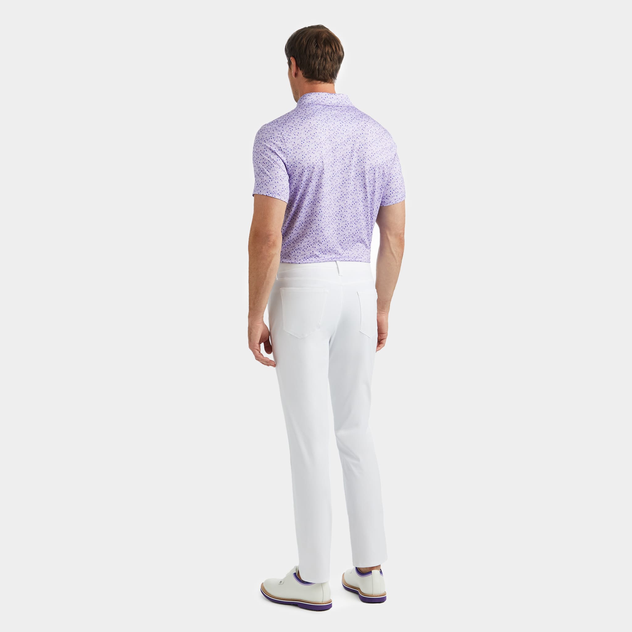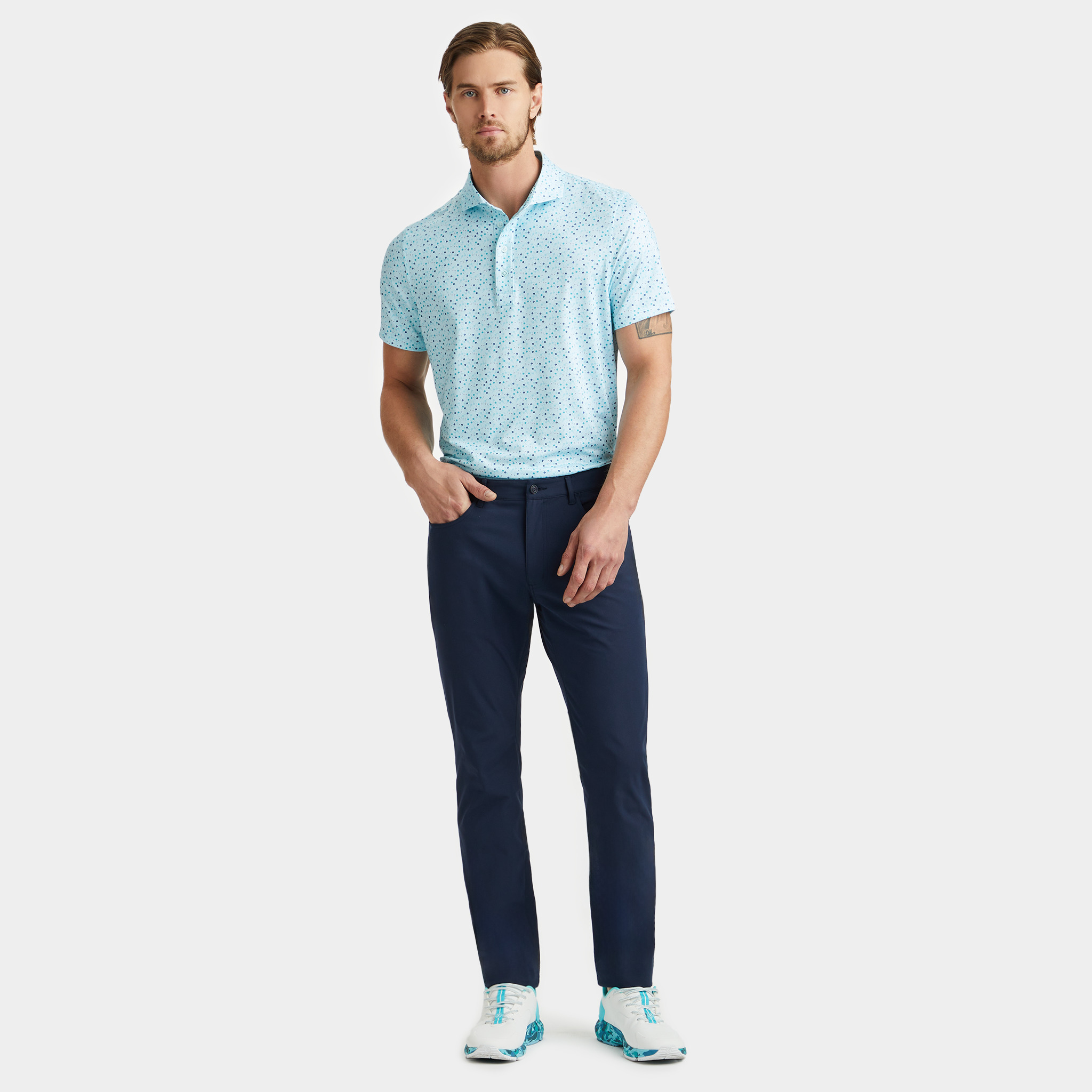 this tech jersey polo is the ultimate everyday essential for days at the clubhouse, the course, and in between. made of floral printed smooth tech jersey with moisture wicking and antimicrobial properties, plus unbeatable 4-way stretch, it’s a must-have for any golfer’s closet.