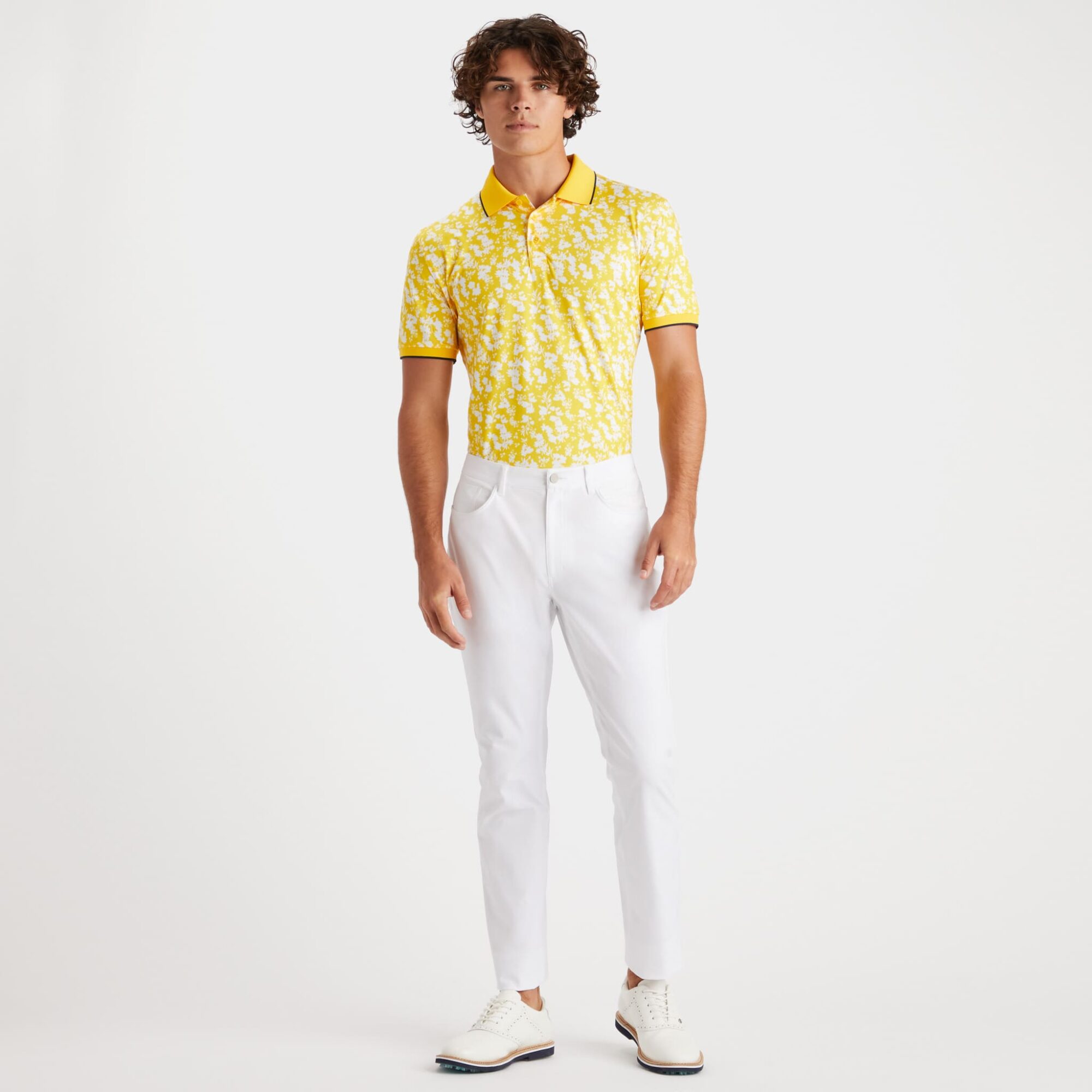 the rib collar tech jersey polo is a modern take on a classic style for the golfer who likes a risk. made with fine tech jersey fabric for maximum mobility and stretch, you’ll always be at the top of your game.