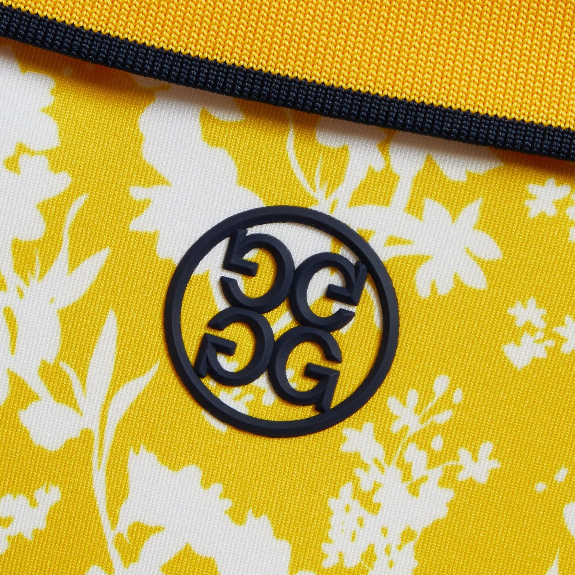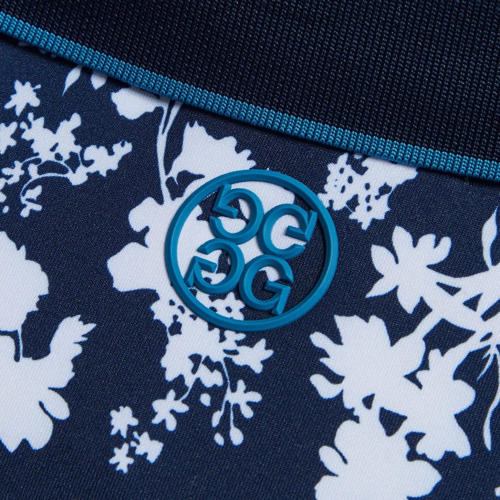 • continuous 3 button placket with contrast laser cut bottom button featuring circle g’s logo