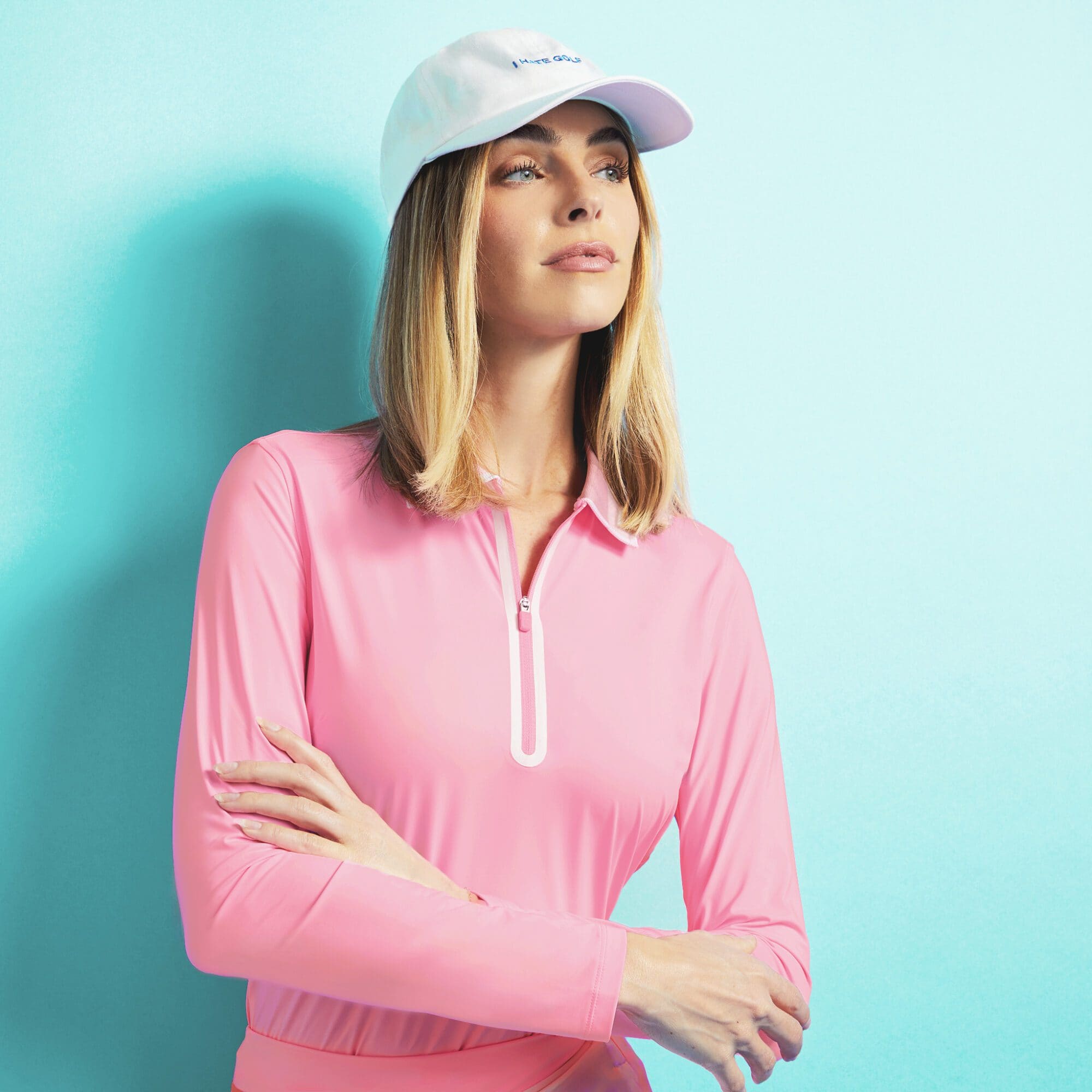 - quarter zip placket & 2 tone contrast knit collar
