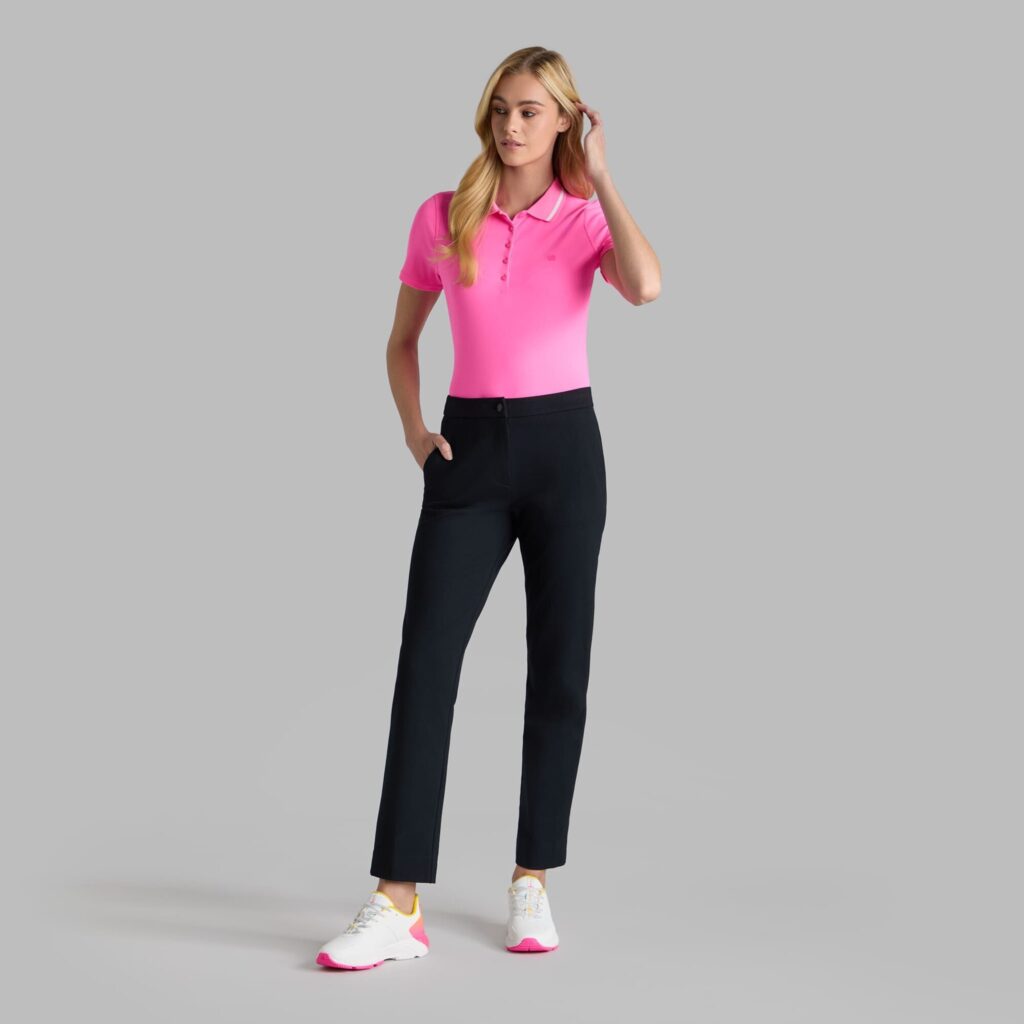 the ribbed tech polo is made from a nylon blend with stretch and moisture wicking properties for superior comfort and functionality on and off the course. this classic style is available in easy pairing colours making it a staple in every golfer’s closet.