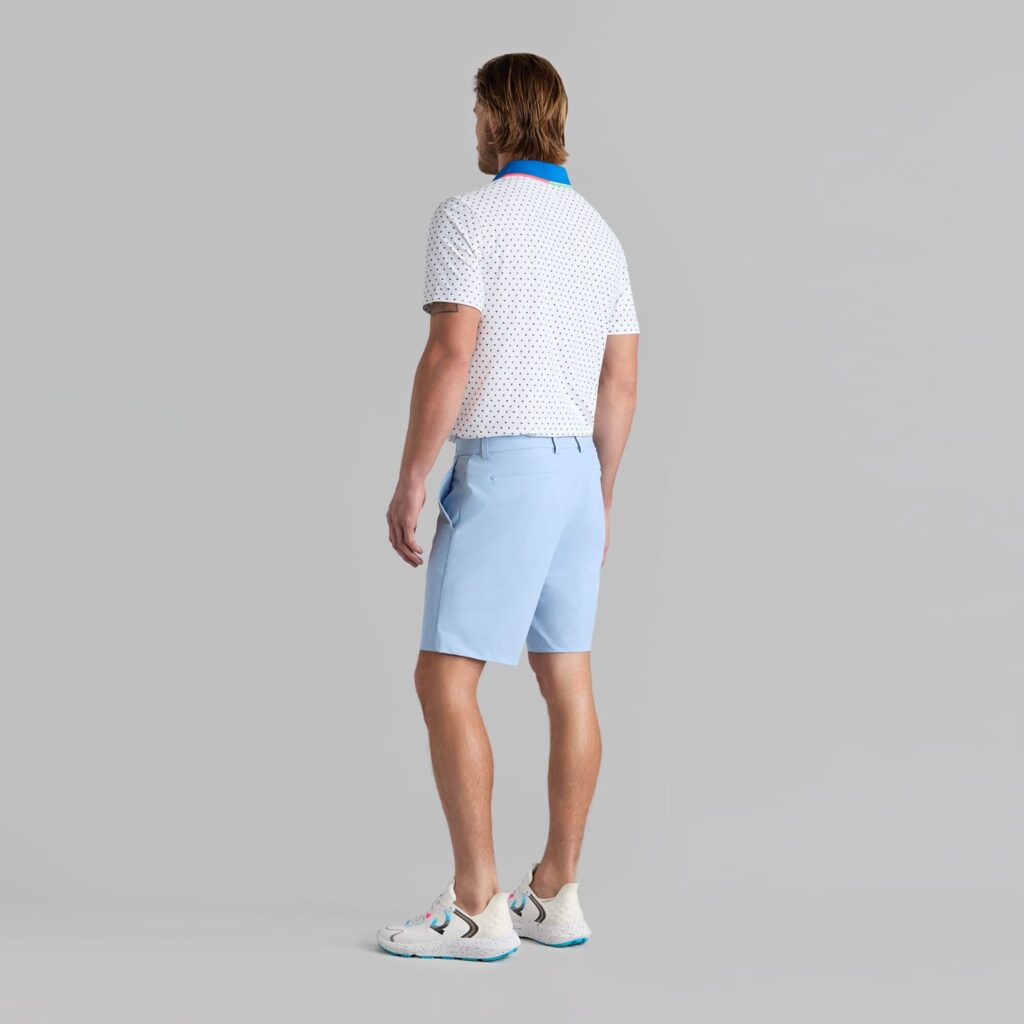 featuring our ditsy floral print, this tech piqué polo is the ultimate everyday essential for days at the clubhouse, the course, and in between. made of breathable tech piqué fabric with moisture wicking benefits and unbeatable 4-way stretch, it’s a must-have for any golfer’s closet. tuck into a pair of our tour 5 pocket pants for an effortless look on the greens.