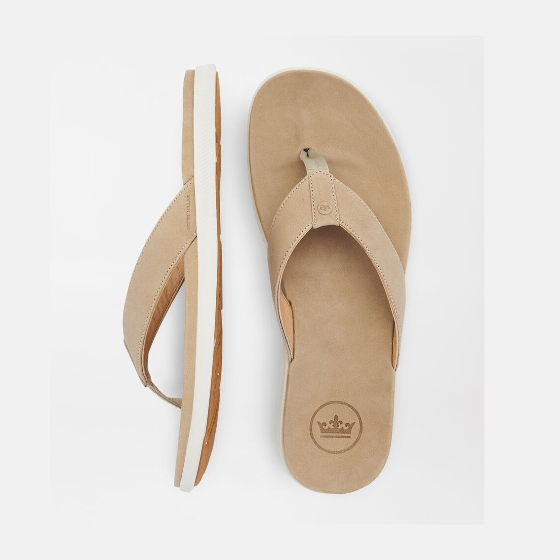 - Men’s 100% nubuck leather flip-flops