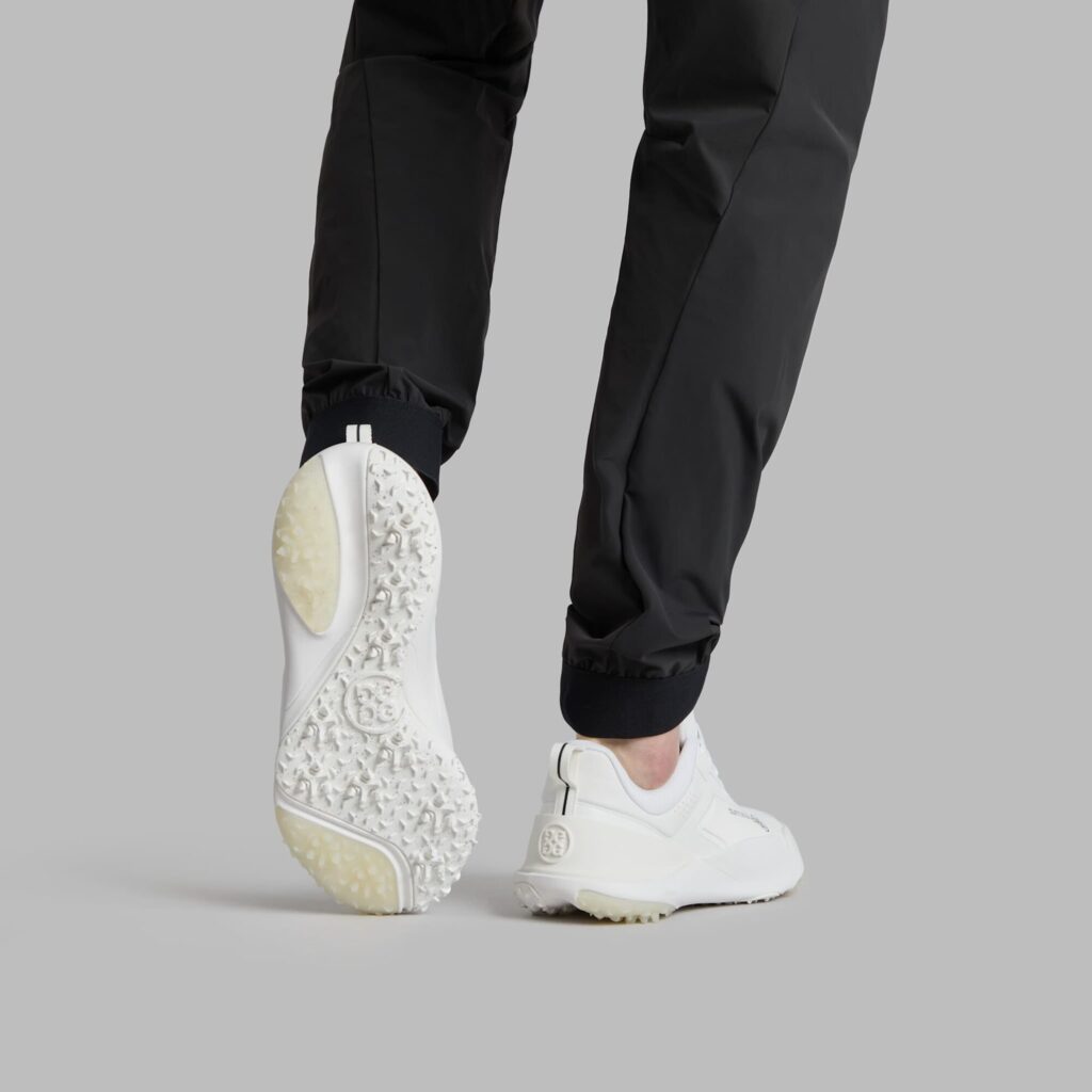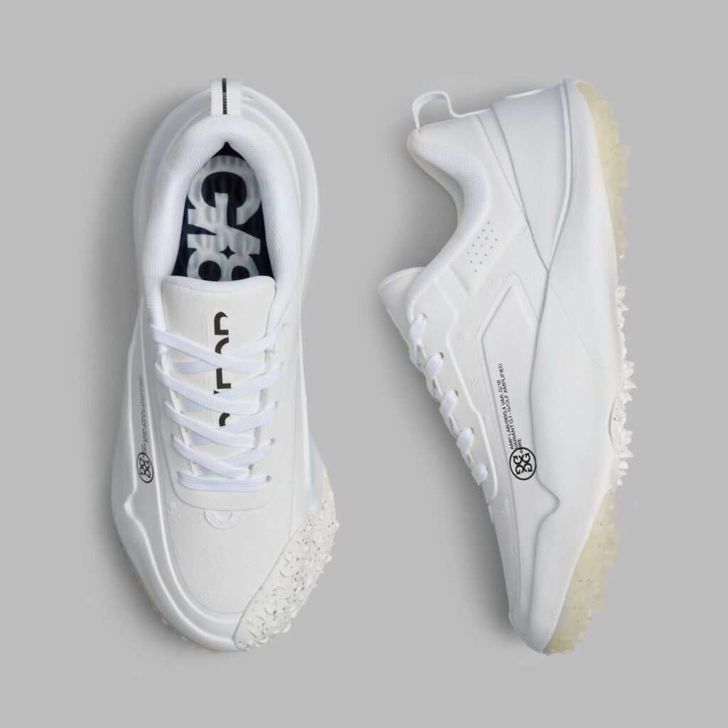 a truly technical and innovative addition to our footwear line, the g/18 golf shoe has all the characteristics needed to give your feet the treatment they deserve. covered in our iconic skull & tees and designed with a wide base and cushioned foam interior, the comfort level is unparalleled and lasts well after eighteen holes. the rounded, podular sole with a crash pad at the heel keeps you sure-footed on dynamic terrains, and the traction rubber toe wrap provides an excellent pivot point for swing stability. any course is a breeze with the g/18 — it’s seriously unmatched comfort in a shoe.