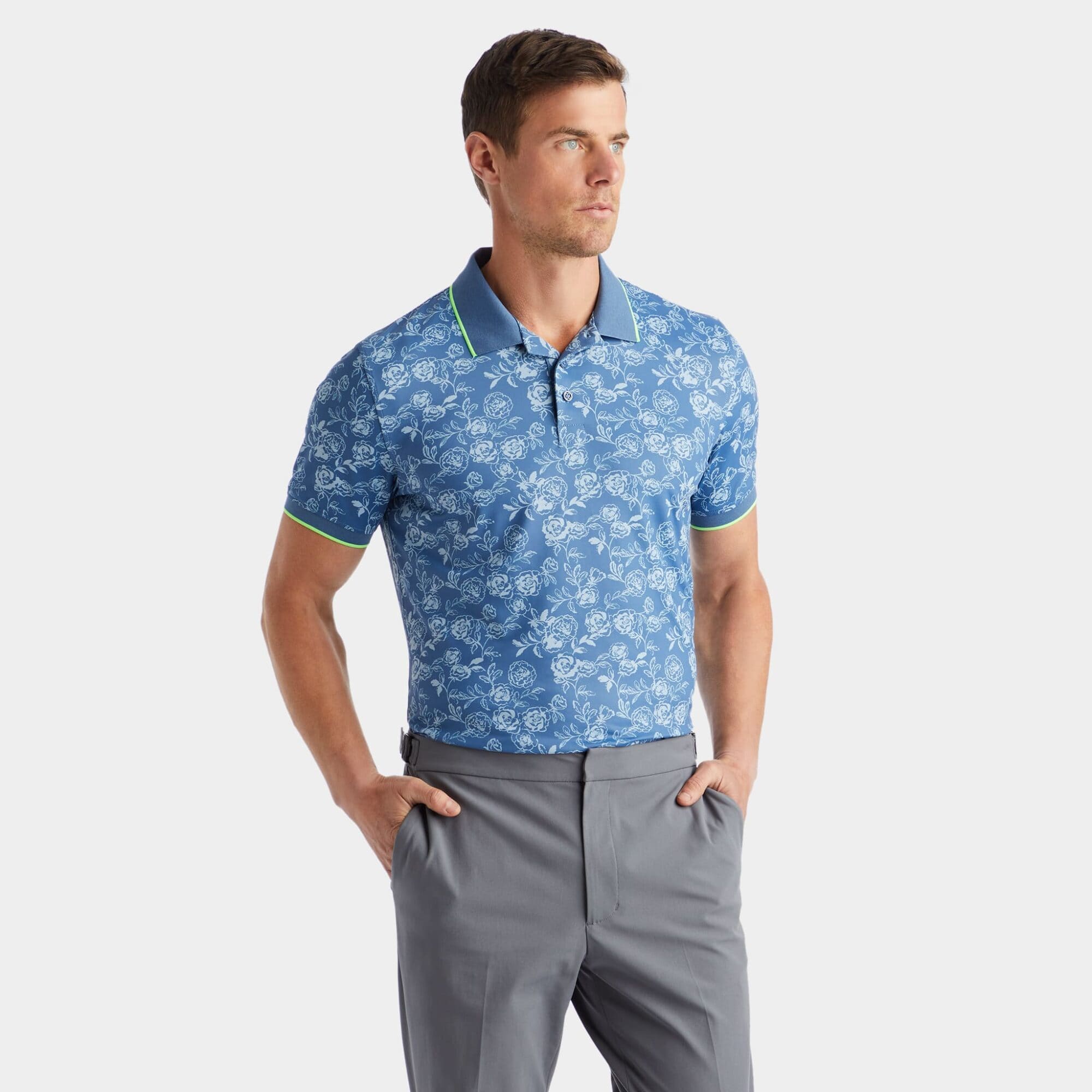 the banded sleeve tech jersey polo is a modern take on a classic style for the golfer who likes a risk. made with fine tech jersey fabric for maximum mobility and stretch, you’ll always be at the top of your game.