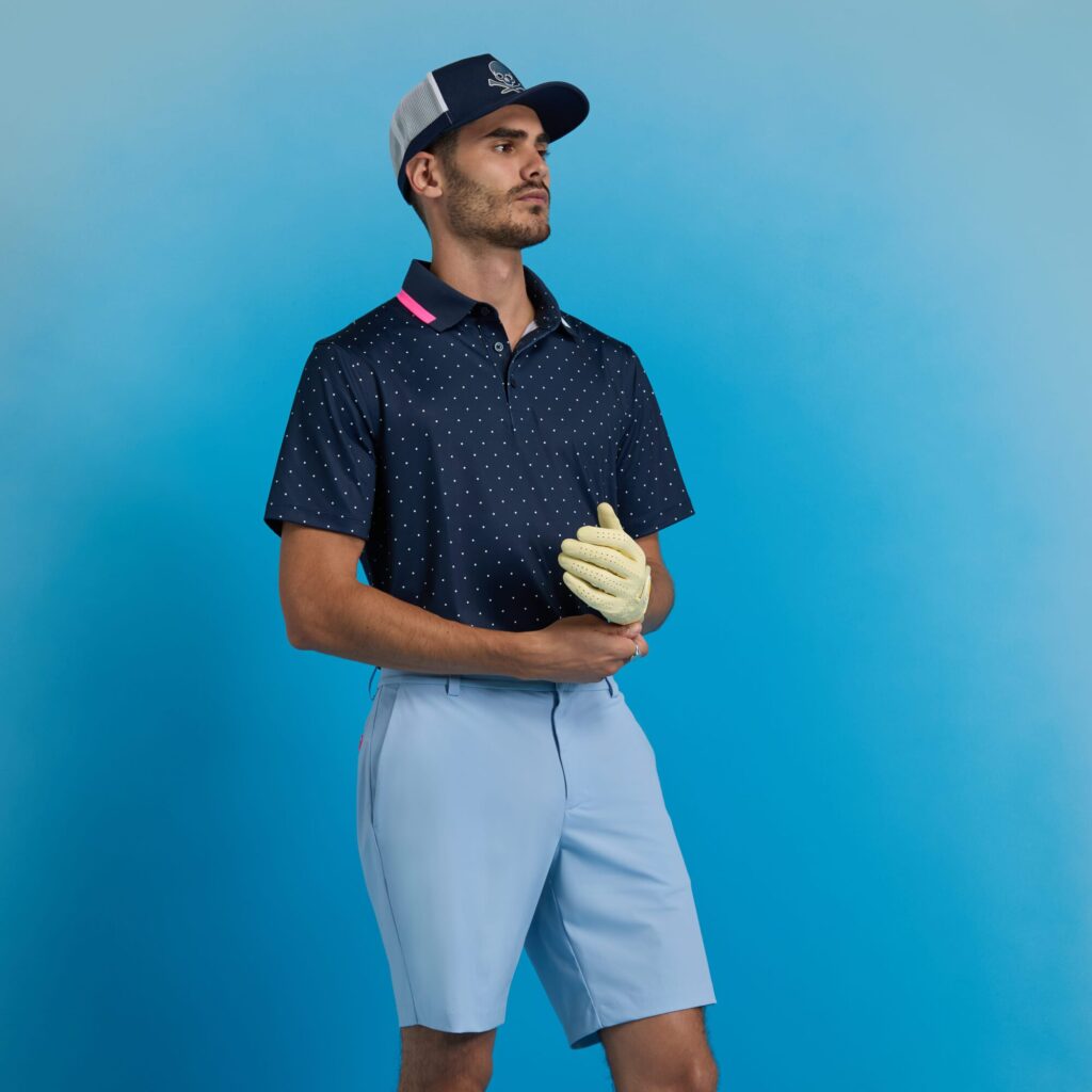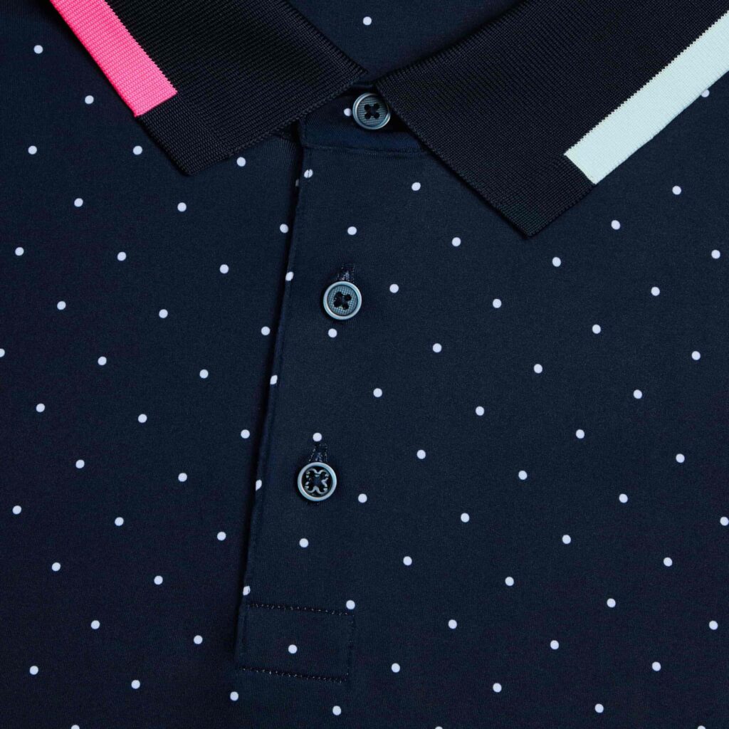 covered in our polka dot print, this tech jersey polo is the ultimate everyday essential for days at the clubhouse, the course, and in between. made of breathable tech stretch jersey with uv protection and odor inhibiting properties, plus unbeatable 4-way stretch, it’s a must-have for any golfer’s closet.
