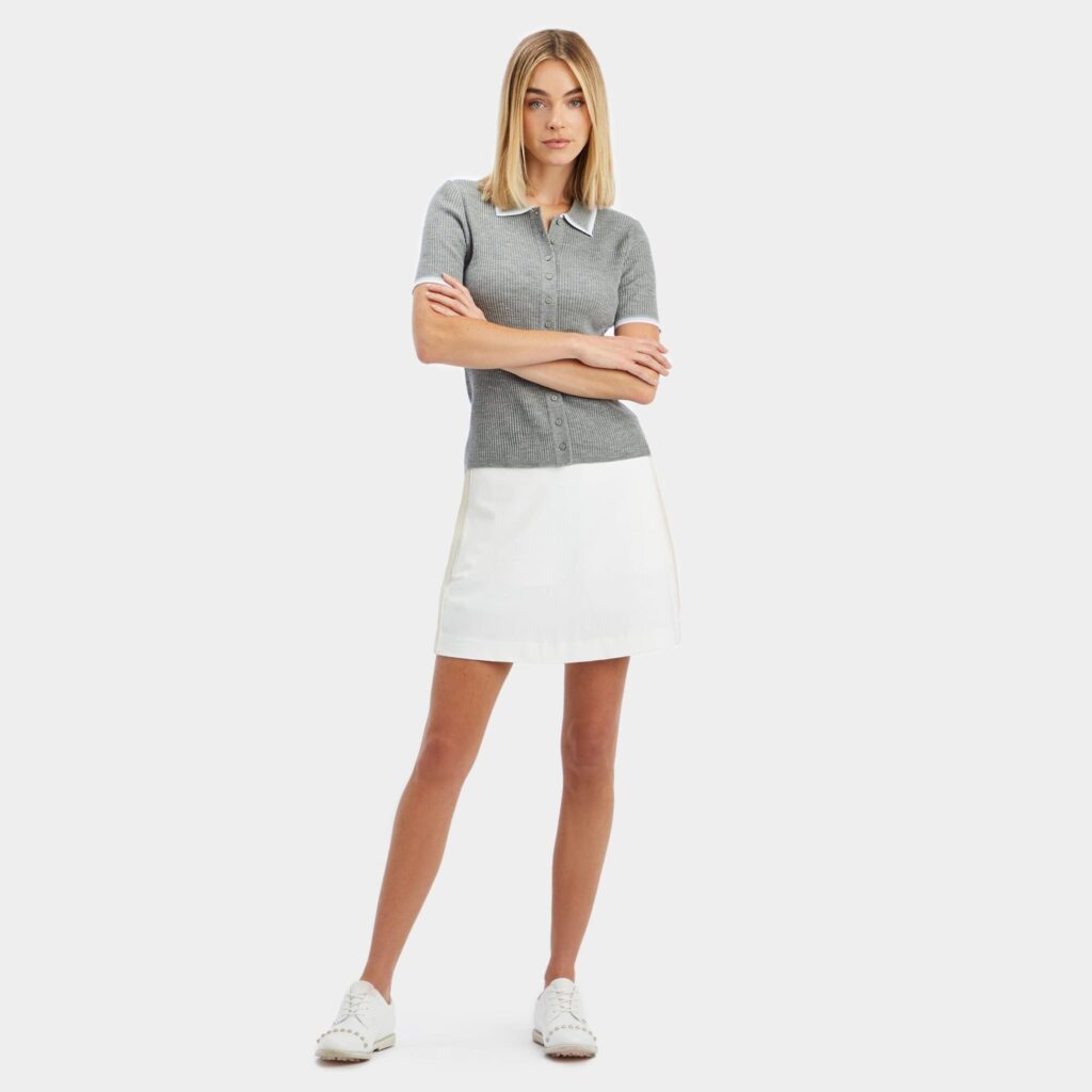 inspired by our best-selling effortless skort, this sophisticated silhouette is the perfect pairing piece for any complementing top. this trend-setting mini features interior silky tech nylon shorts equipped with a cooling effect for all day comfort.