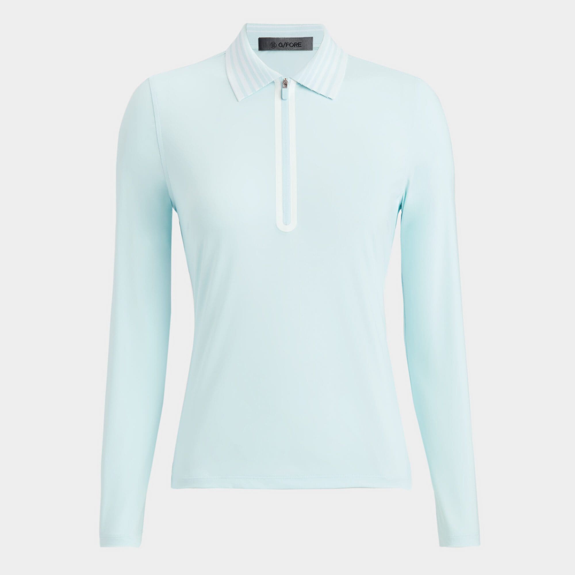 a best seller for many reasons. retro fashion inspired with a gradient ribbed collar and unique quarter zip taping embellishment make this style a standout on the course while the stretchy silky tech nylon fabric – boasting performance properties for days – drapes elegantly on the body. pair it with our effortless skort for a chic on-course look.