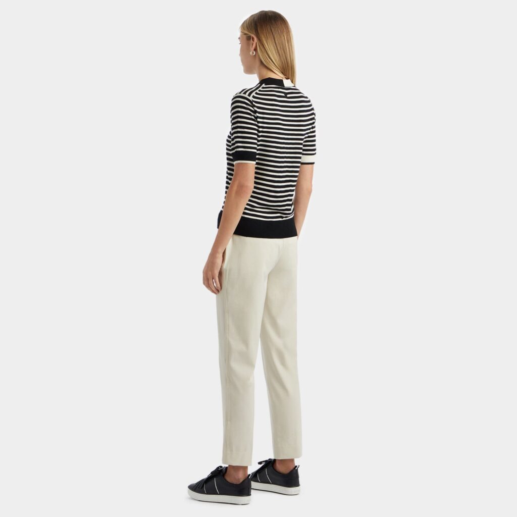 the stretch tech twill mid rise straight leg trouser is your go-to for any occasion. designed with tonal taping down the sides and 4 pockets so you always have a place for your scorecard, they pair nicely with the offset rugby stripe tech piqué polo.