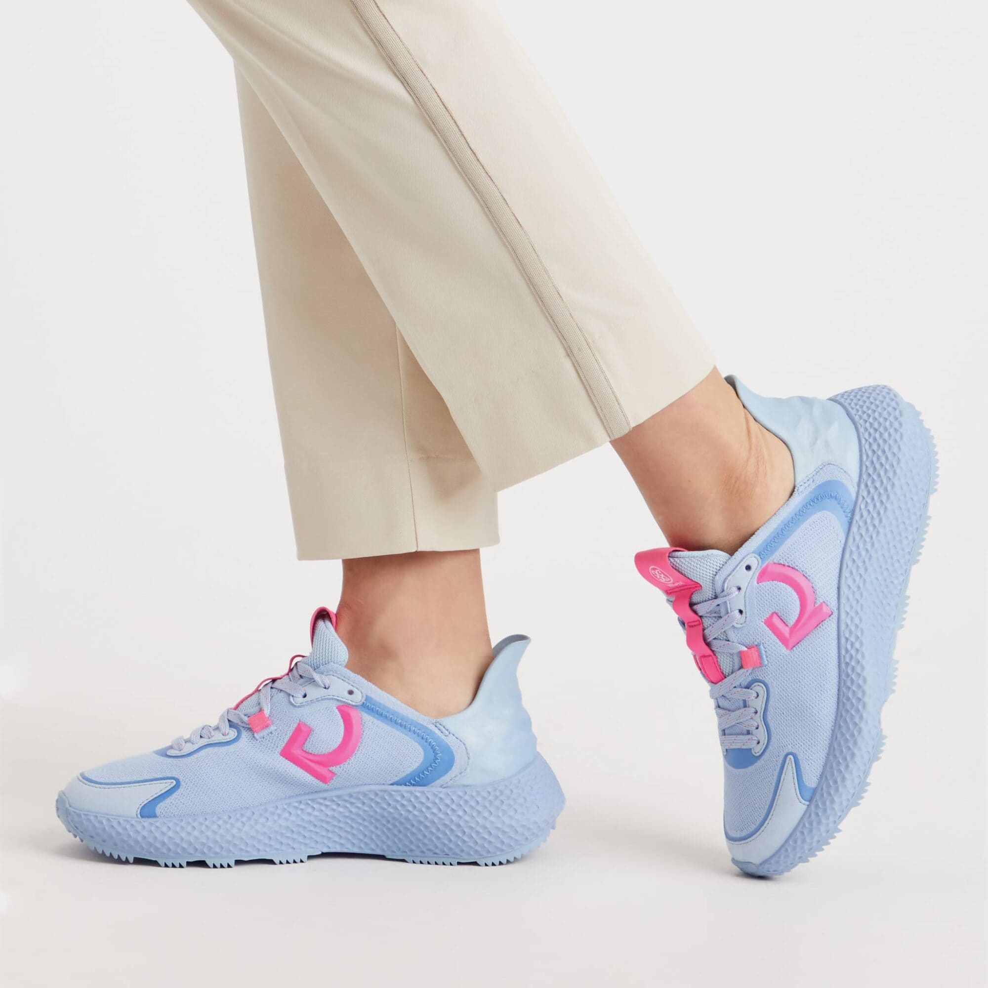 the women’s mg4x2 knit contrast quarter g golf cross trainer is a multi-functional shoe that takes you from the street to the course with ease. featuring a one-piece engineered waterproof g/dry knit upper for unbeatable comfort, an auxetic lattice midsole for all-day support, a sawtooth traction pattern for grip, and finished with our staple triple-density foam cushion footbed for a massage with every step.