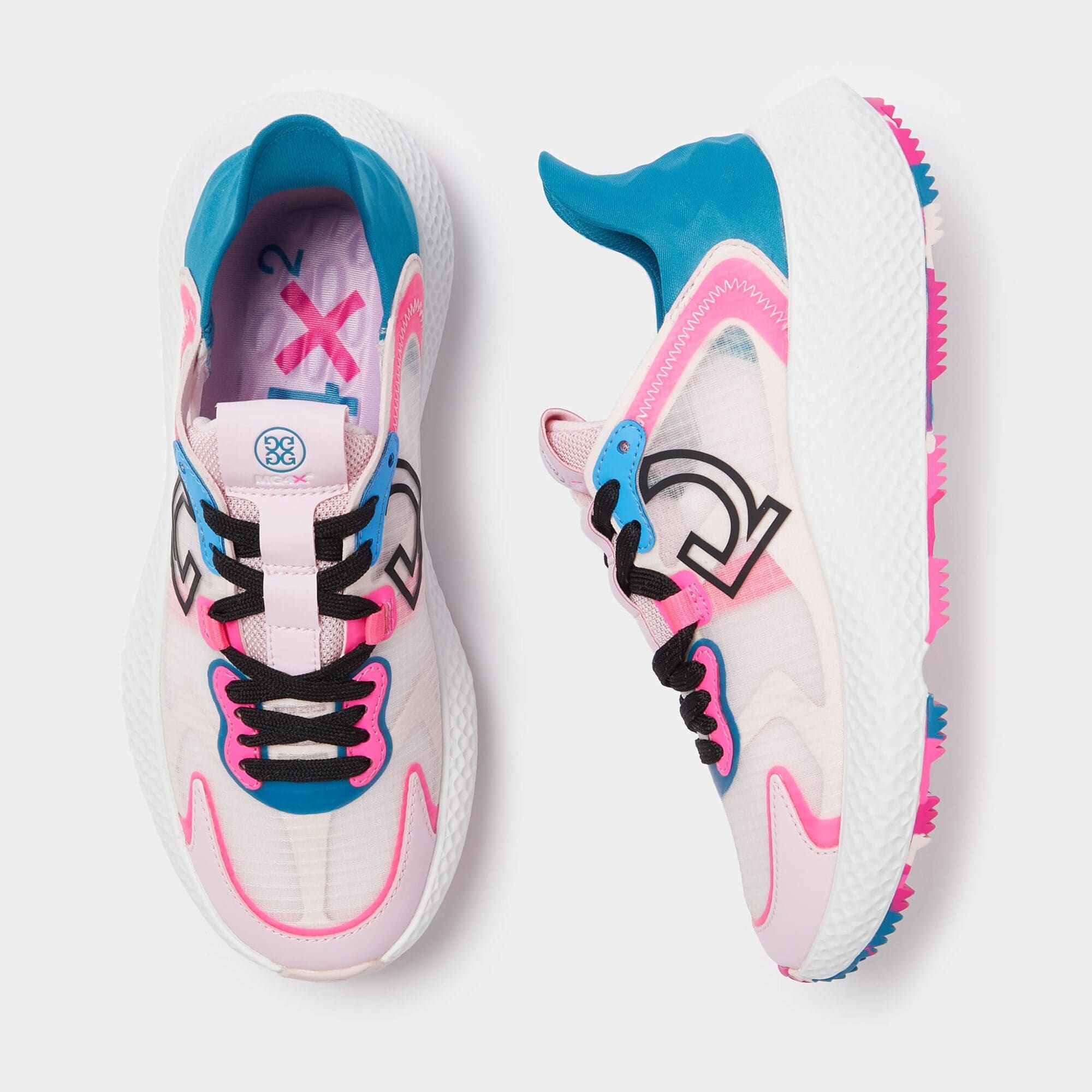 the mg4x2 golf cross trainer is a multi-functional shoe that takes you from the street to the course with ease. featuring a one-piece engineered breathable ripstop upper for unbeatable comfort, an auxetic lattice midsole for all-day support, a sawtooth traction pattern for grip, and finished with our staple triple-density foam cushion footbed for a massage with every step.